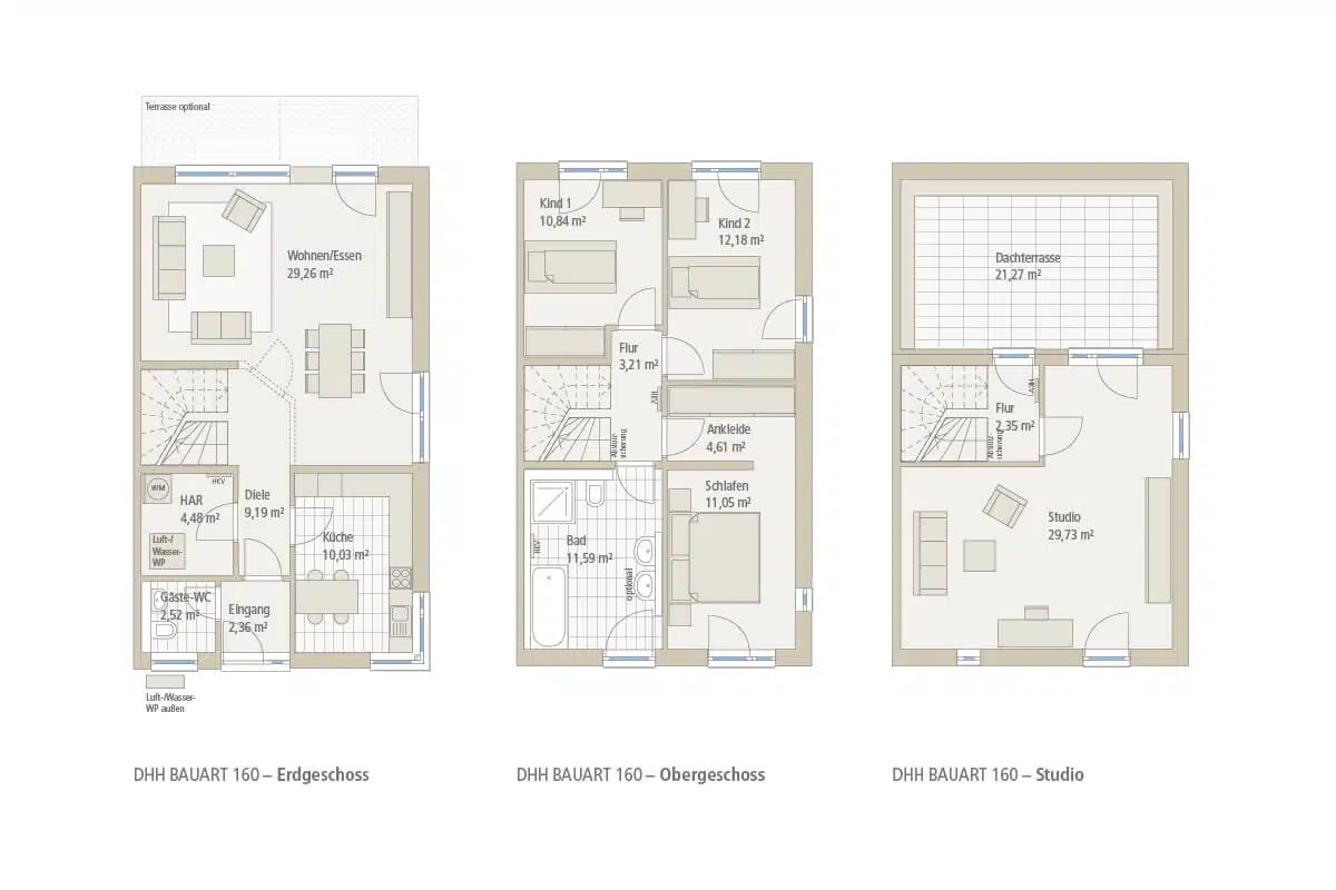 Wohnen/Essen, Küche, HAR, Gäste-WC, Diele, Badezimmer, 3 Schlafzimmer, Ankleide, Studio, Dachterrasse
